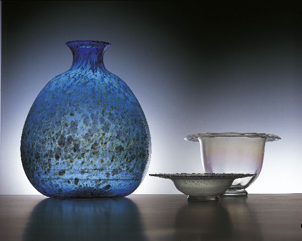 Houder voor luciferdoosje, asbakjes, vaasje en schotel
