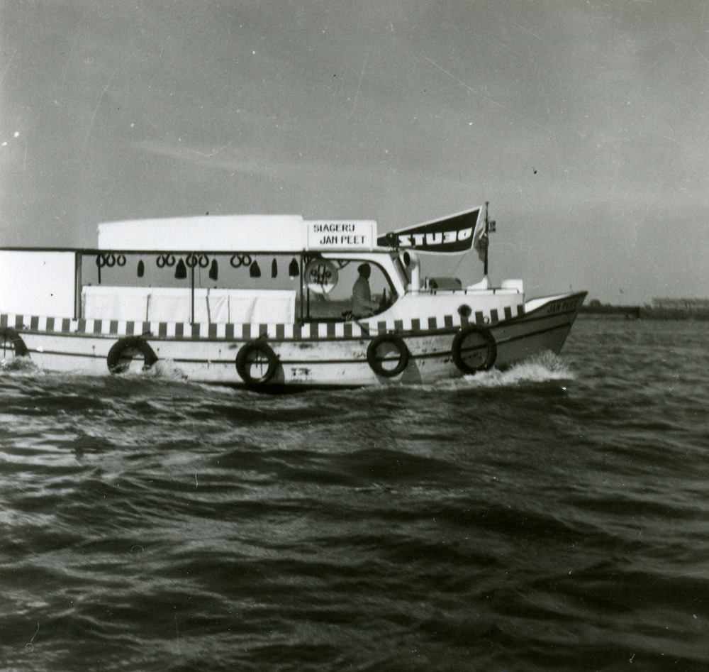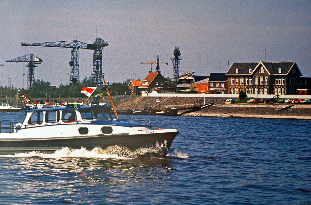 Kleurenfoto van een douaneboot met op de achtergrond...