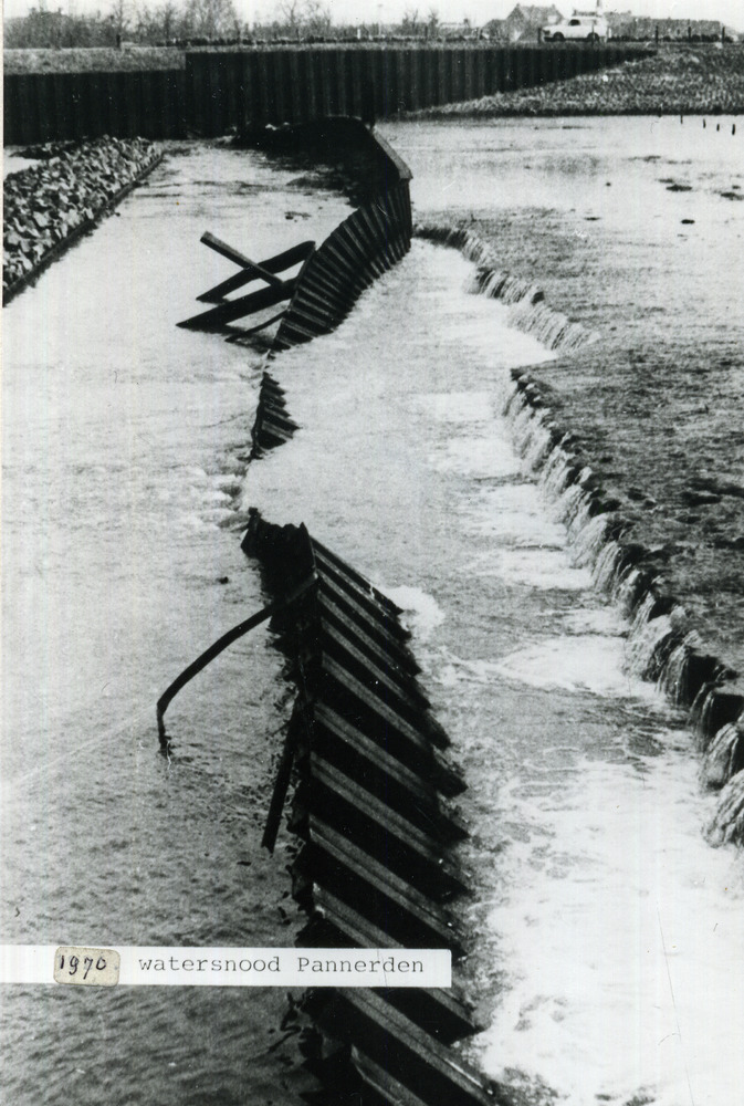Zwart-wit foto van de Pannerdense overlaat tijdens h...