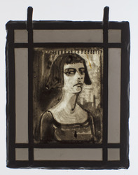 Damesportret op glas-in-lood