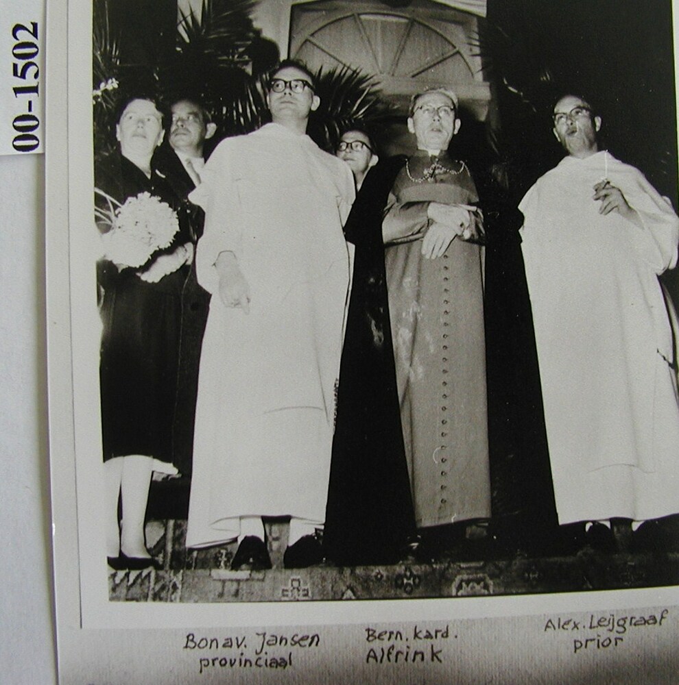 Kardinaal Alfrink op het Dominicanen klooster te Hui...