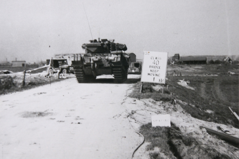 aanleg Baileybrug door Canadezen (april 1945). WOII.