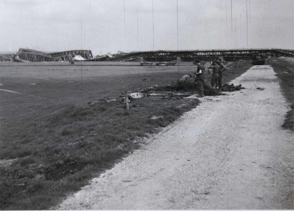opgeblazen brug over de IJssel (april 1945). WOII.