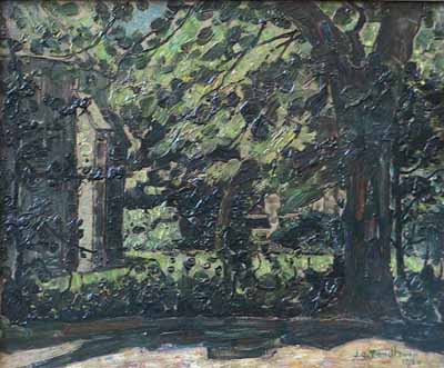Zwaar geboomte in pastorietuin