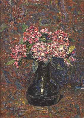 Een kelderfles met kalmia's