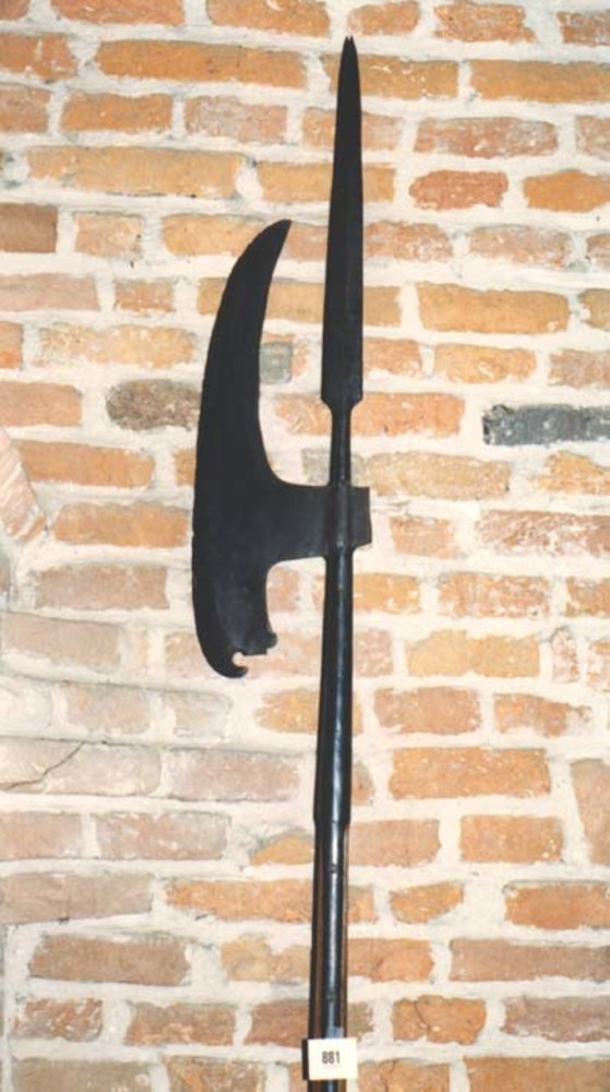 Wapen "Hellebaard" bijl uit ijzer, de stik uit hout,...