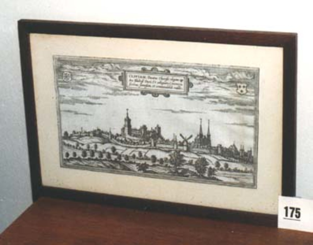 Boekillustratie "Cliviam Ducatis Cluvensis" op papie...