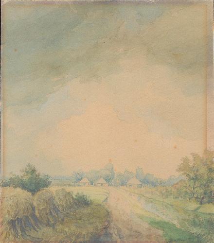 Aquarel van de oude kerk van Zuider-Dragten en de ou...