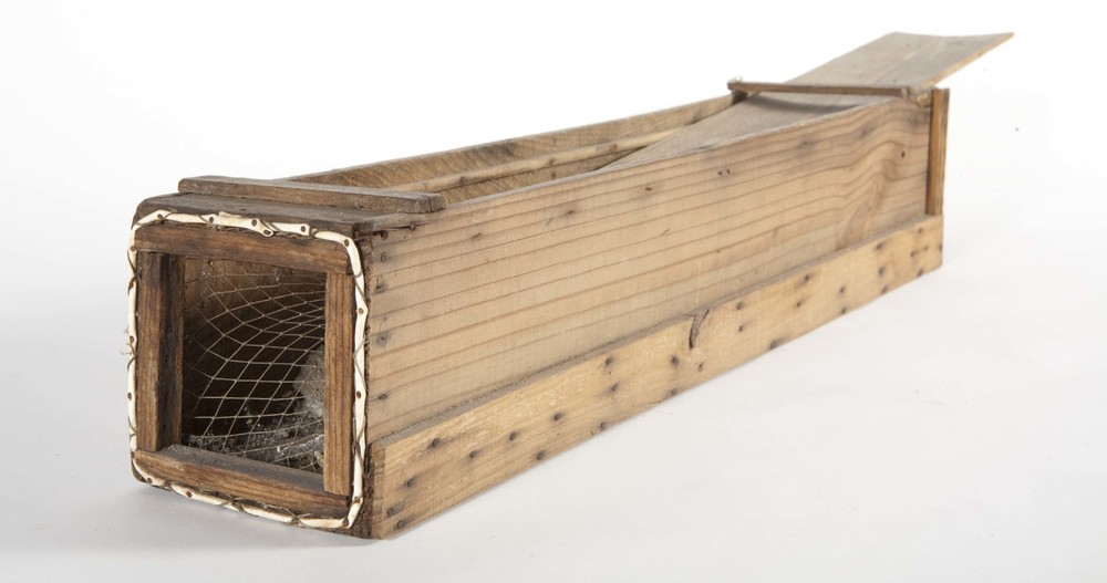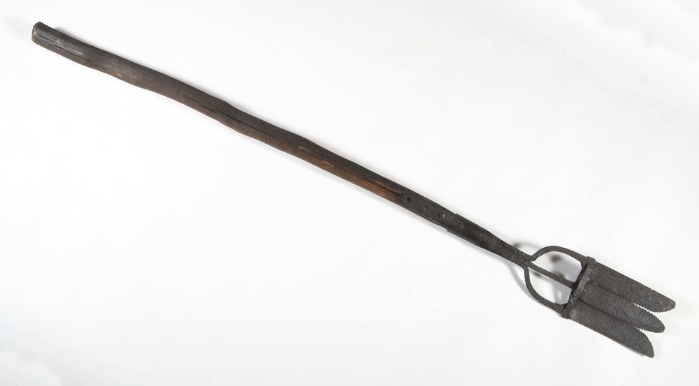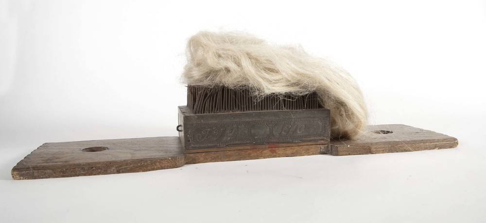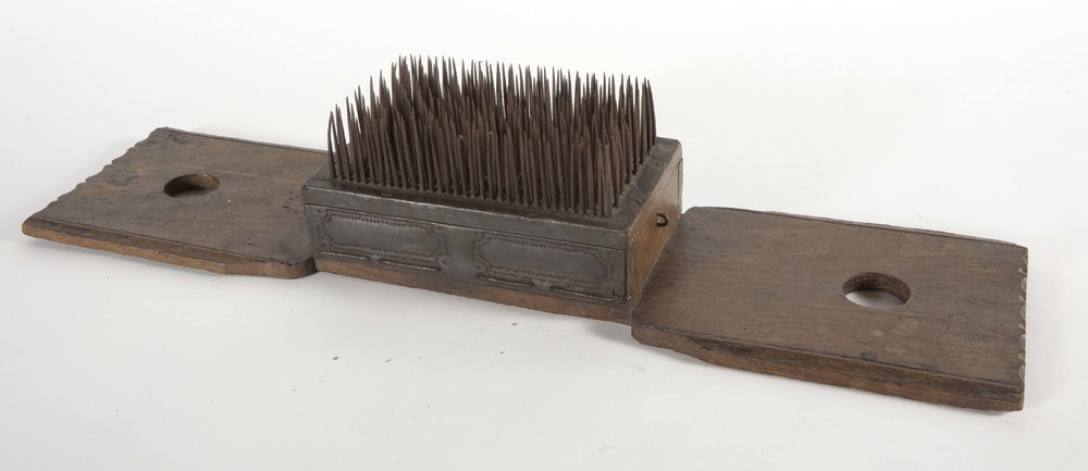 Vlaskam of hekel van hout met ijzeren pennen en leer...