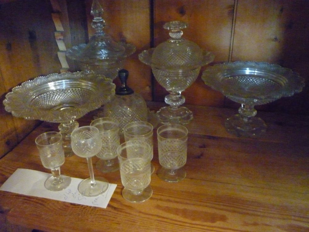 Glas: 2 dozen met 15 objecten van glas (2x fles met ...