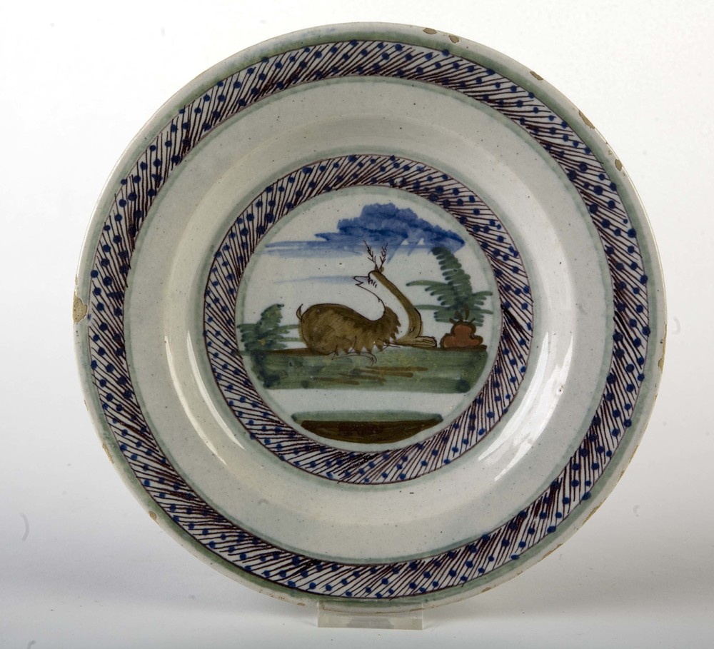 Bord van aardewerk, 18de eeuws, vervaardigd in Delft