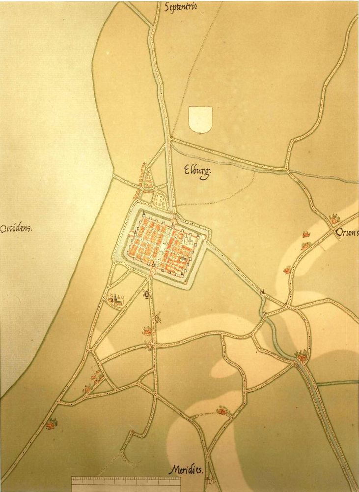 Gravure, voorstellende een kaart van Elburg, vervaar...