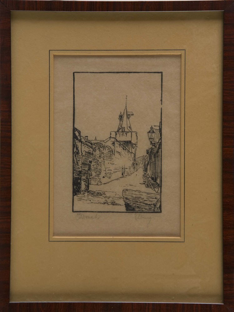Diepdruk op papier met voorstelling van "Elburg aan ...