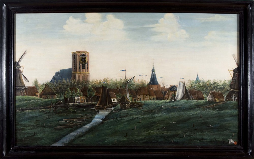 Olieverfschildering "Gezicht op haven en Vischpoort ...
