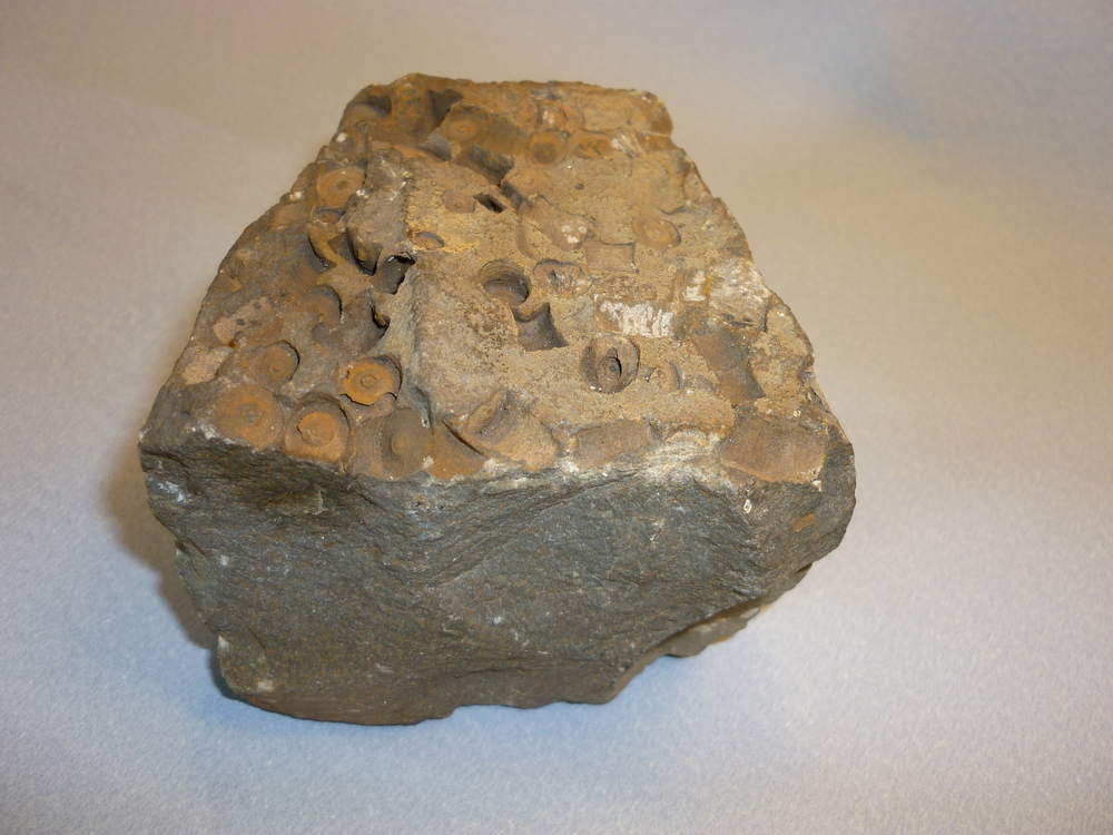 Fossiel, zeelelie, versteende stengelfragmenten in b...