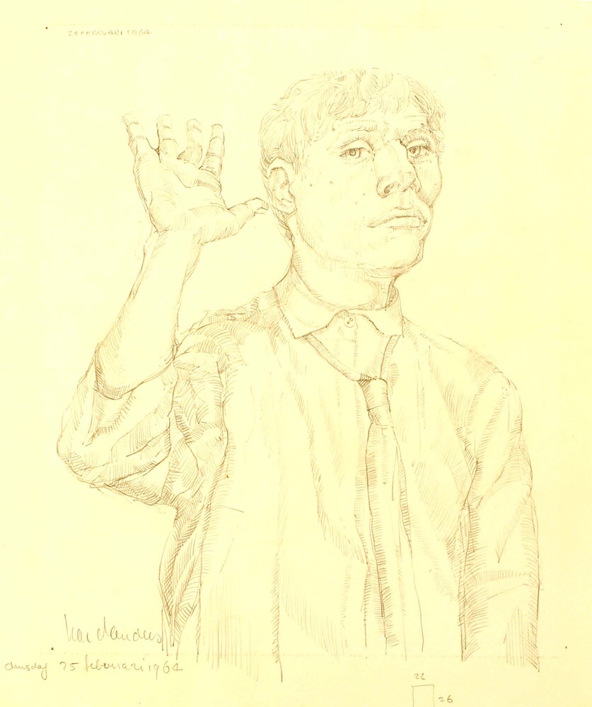 Zelfportret met opgeheven hand