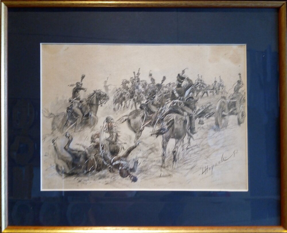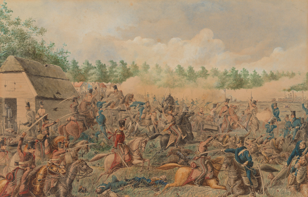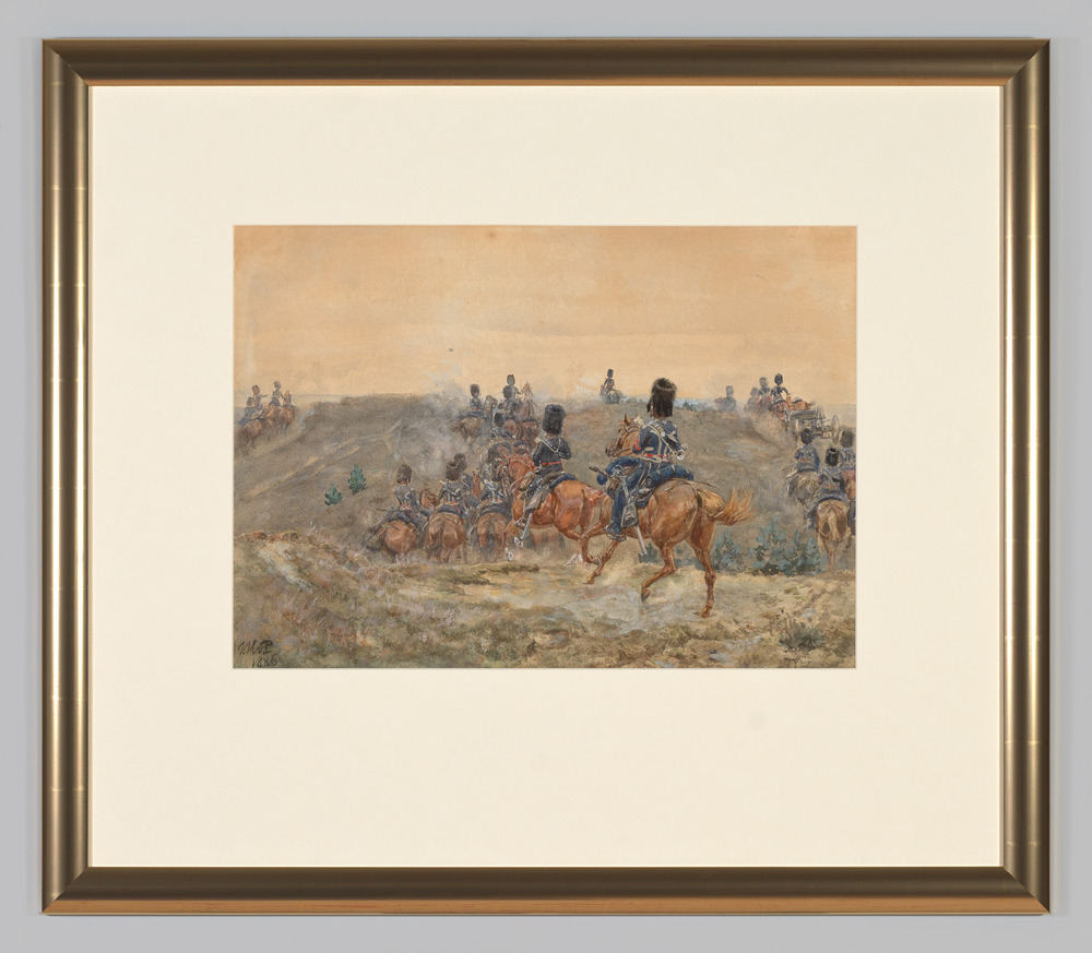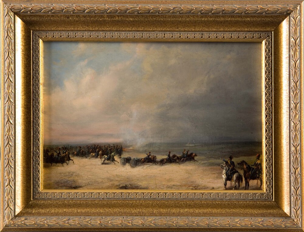 Een oefening van de R.A op de heide bij Zeist in 1843