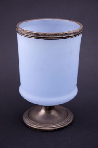 Opaalglazen beker met zilveren rand en voet met opsc...