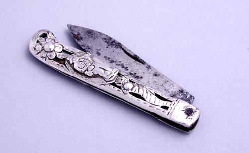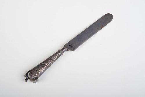 Fries zilveren zakmes met versieringen en inscriptie...