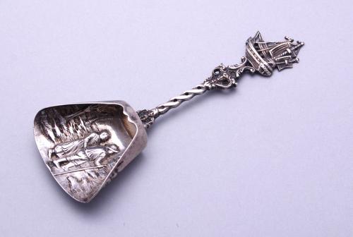 Zilveren memorielepel met Friese sjees
