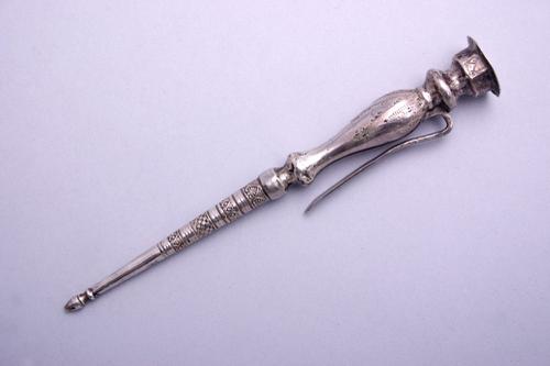 Zilveren haak met drie ogen behorend bij een chatela...