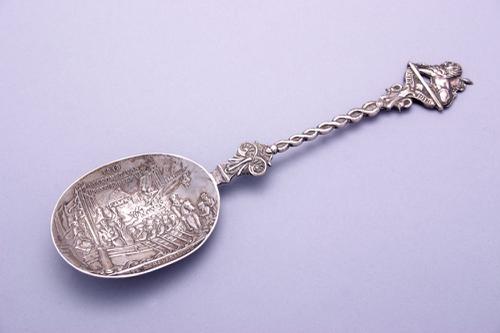 Zilveren memorielepel door J. Schijfsma