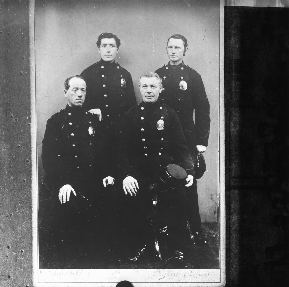 Portret van vier mannen in uniform