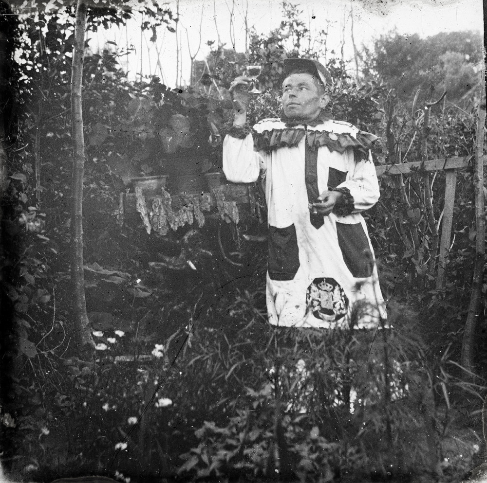 Portret van een man in verkleedkleren