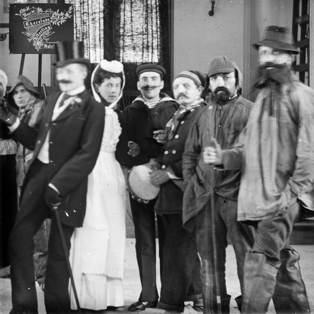 Verkleed gezelschap, mogelijk in de Nijkerkse chocol...