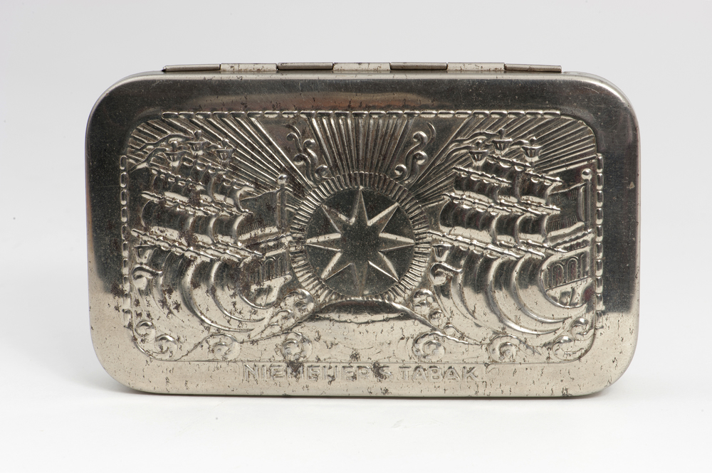 Tabaksdoos met daarop een afbeelding van twee zeilsc...