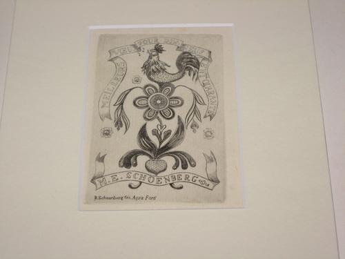gestileerde bloem met haan; ets
