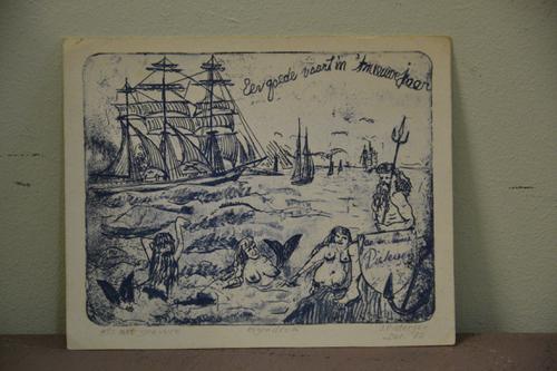 werkpauze met op de achterkant een schip
