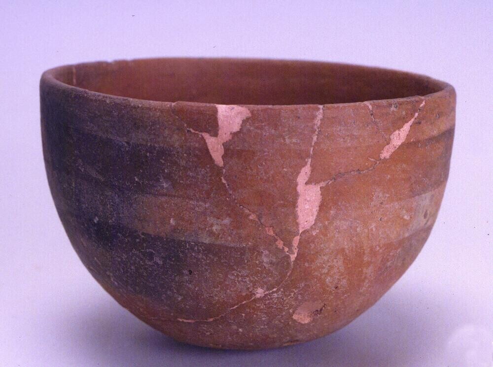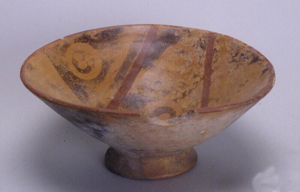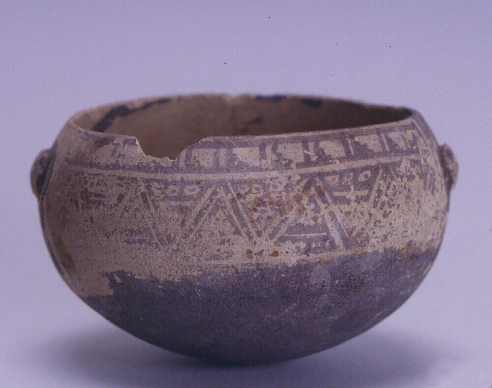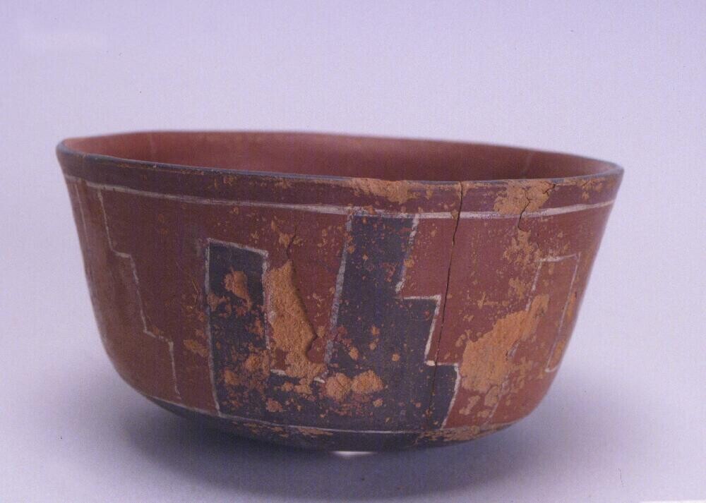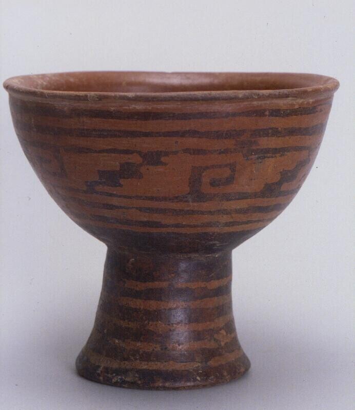 kom met een schildering van trap-meandermotieven