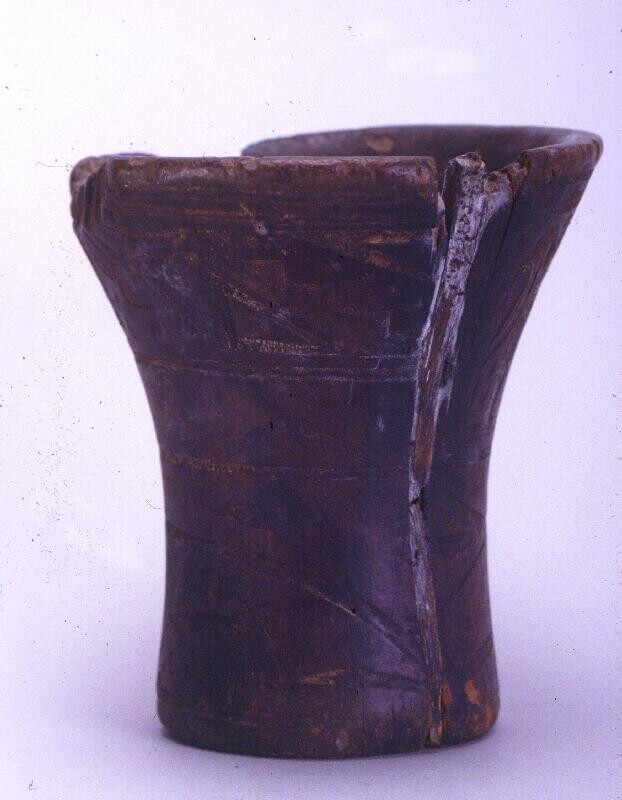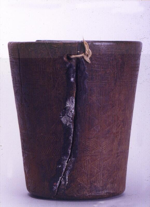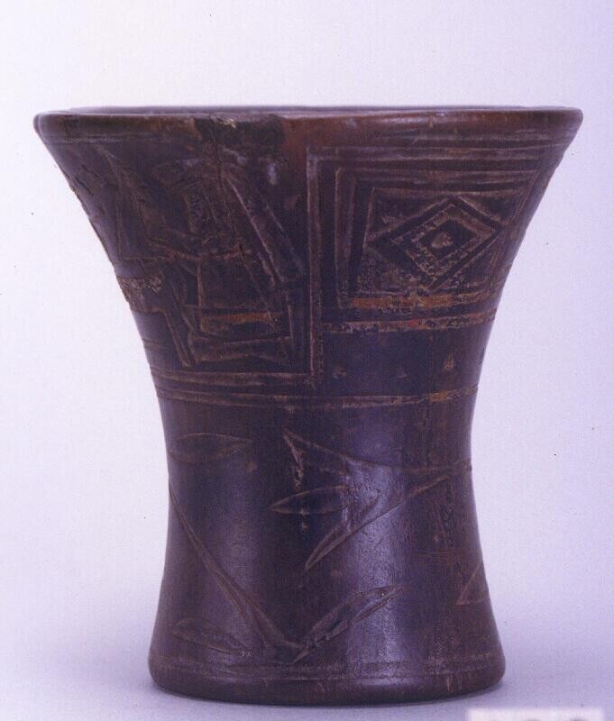 Beker of kero met voorouderhoofden en geometrische d...