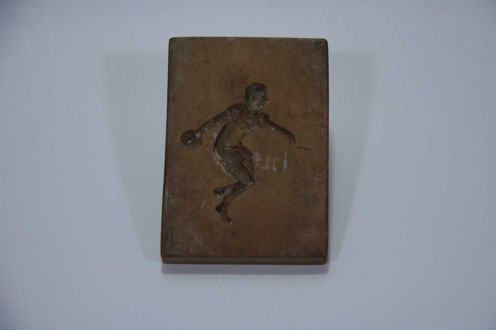 Marsepeinplank van hout in de vorm van een sporter