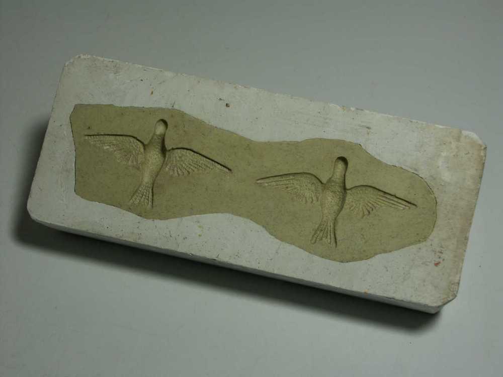 Dragantvorm van gips met 2 identieke vogels