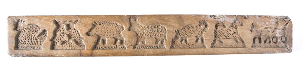 Speculaasplank met 7 figuren o.a. zwaan, zwijn, mens