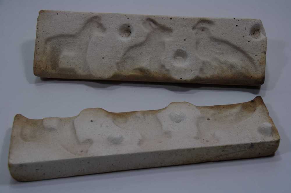Suikerwerkvorm van gips met 3 figuren: een hond, haa...