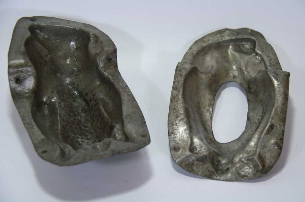 Marsepeinvorm van gips voor 3 eieren uit de 20e eeuw