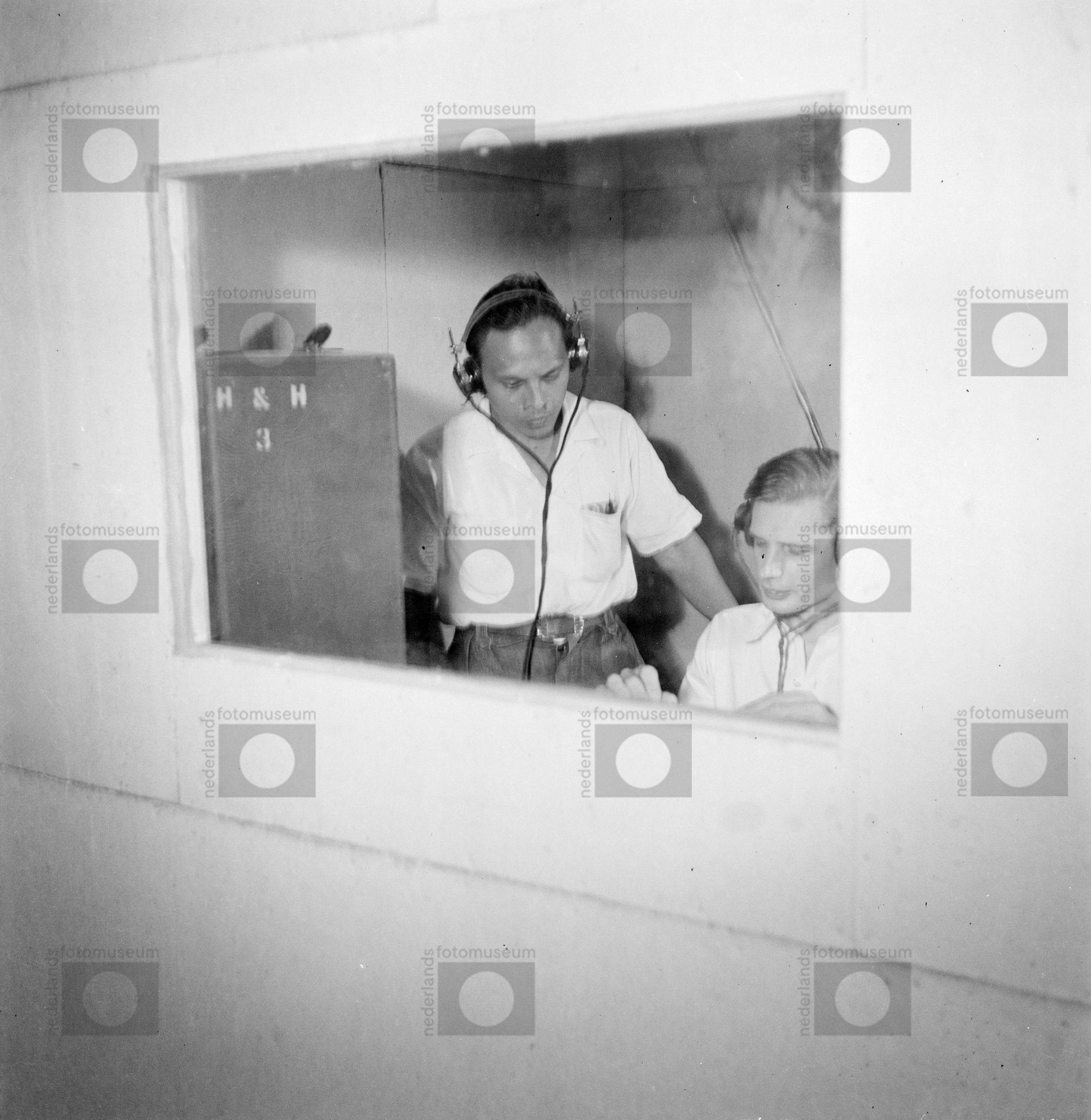 Wim de Vries bewerkt geluidsopnamen op glasplaat voo...