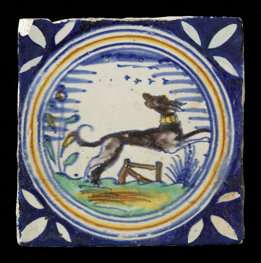 Vloertegel van keramiek, tinglazuur, voorstellende e...
