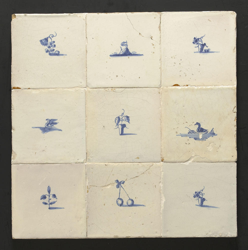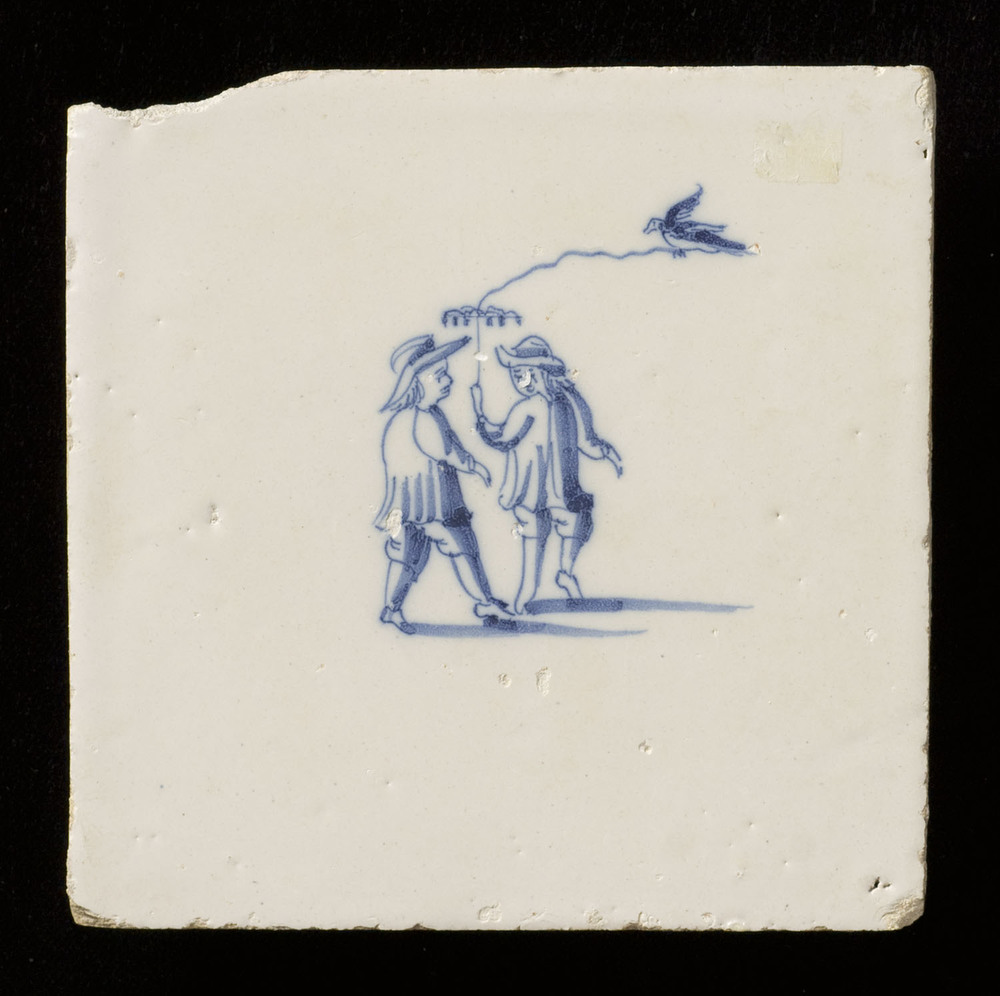tegel van keramiek met tinglazuur, voorstellende: vo...