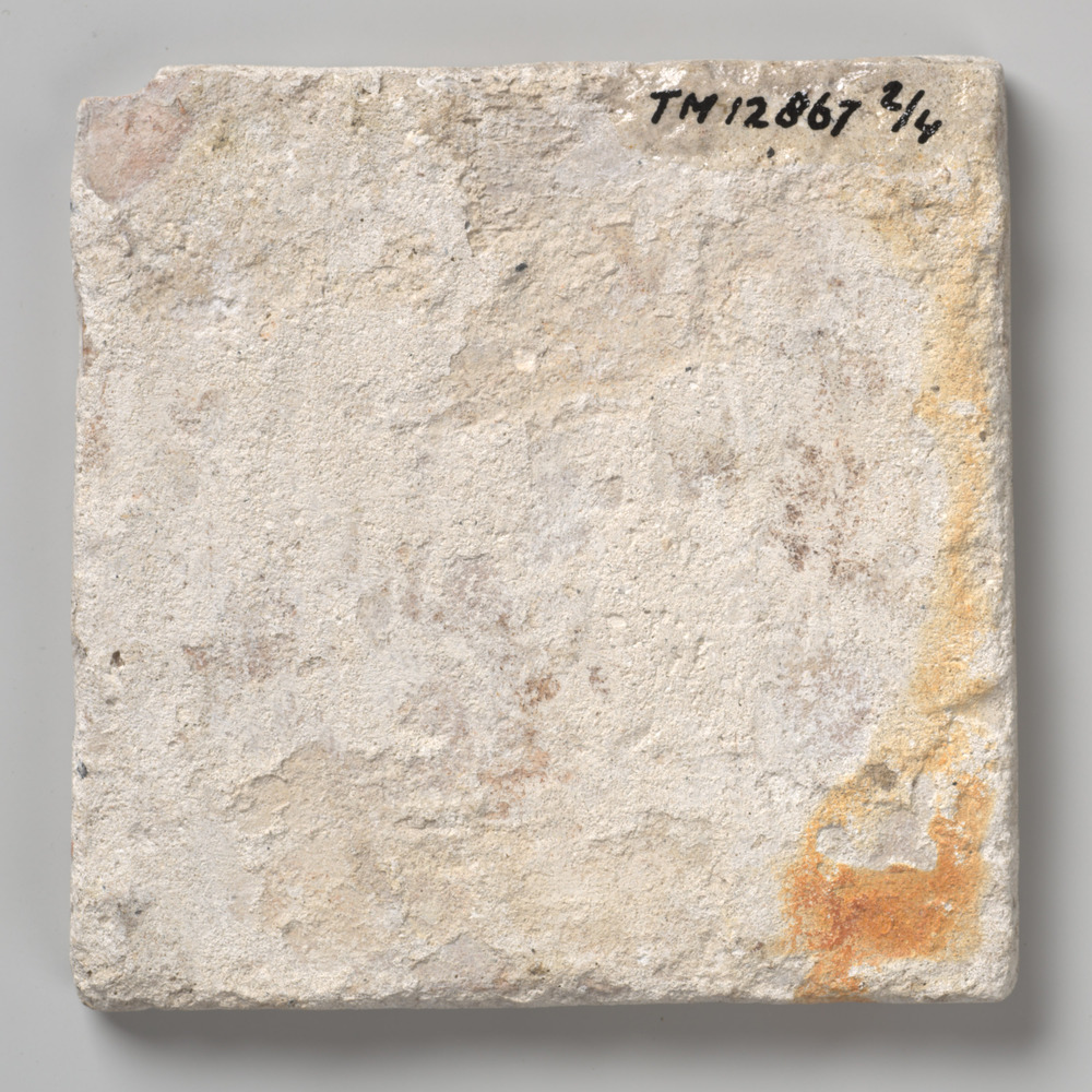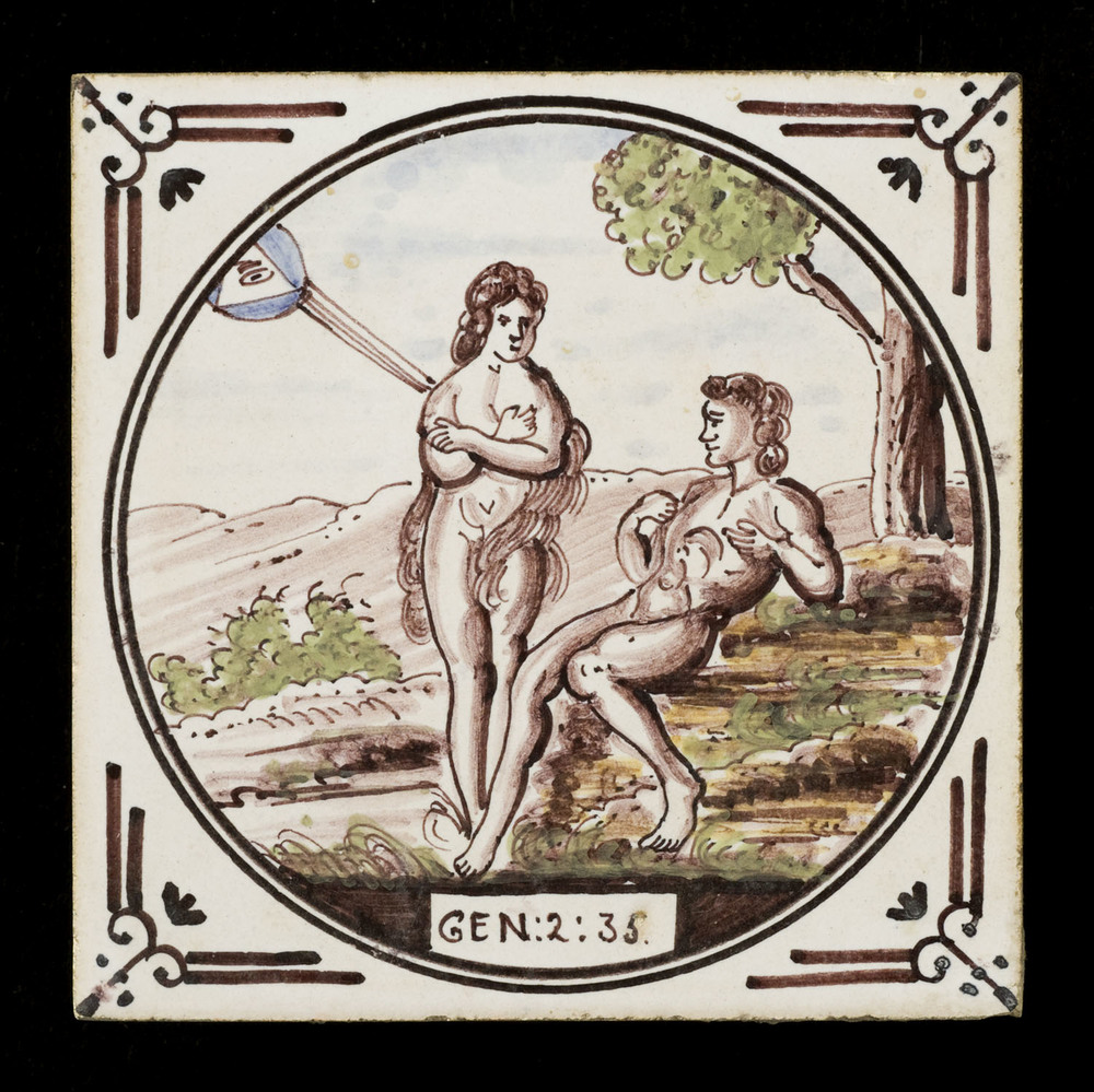 Tegel van keramiek met tinglazuur, voorstellende: He...