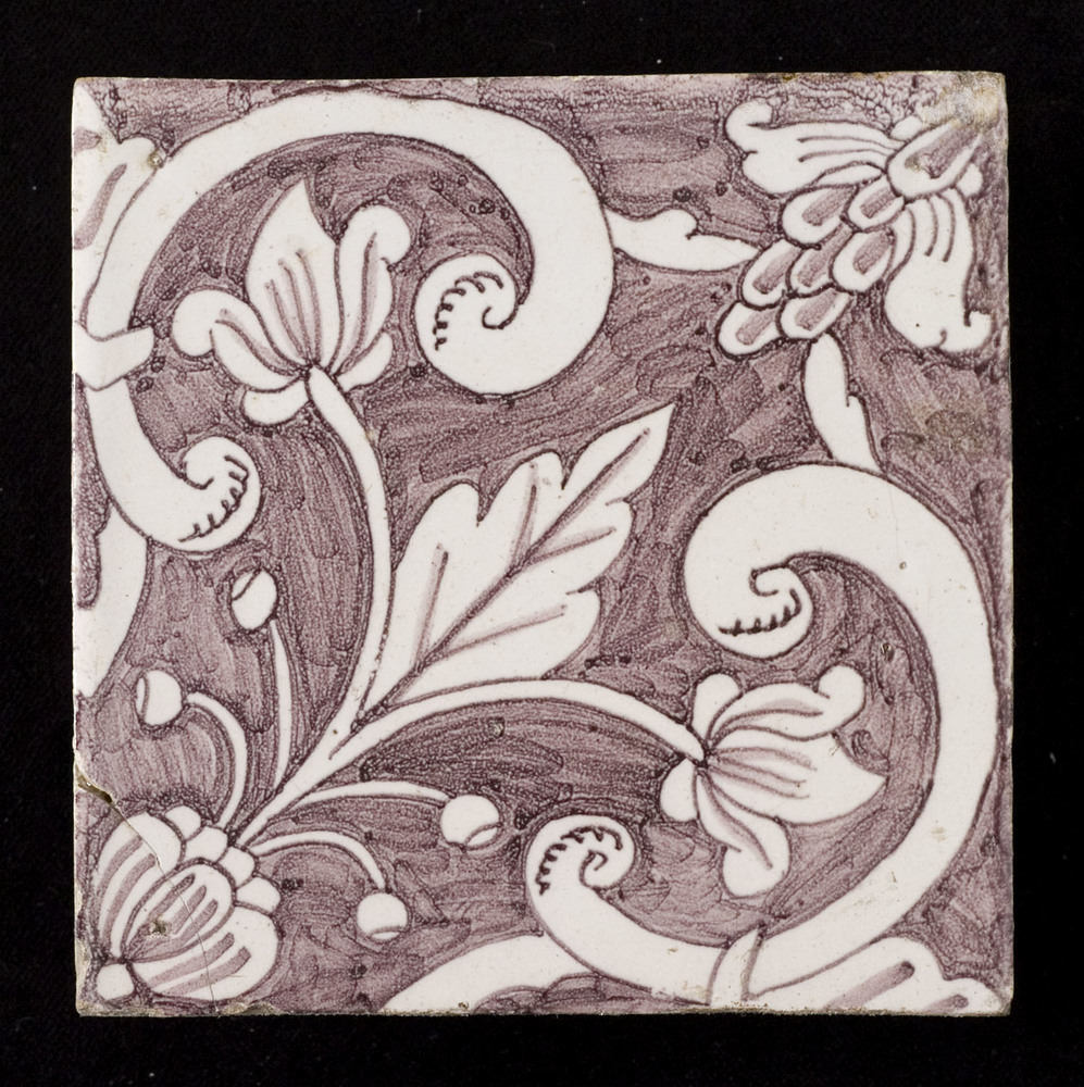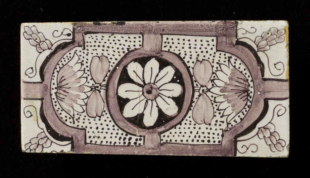 Tegel van tinglazuur, met voorstelling: ornament (de...