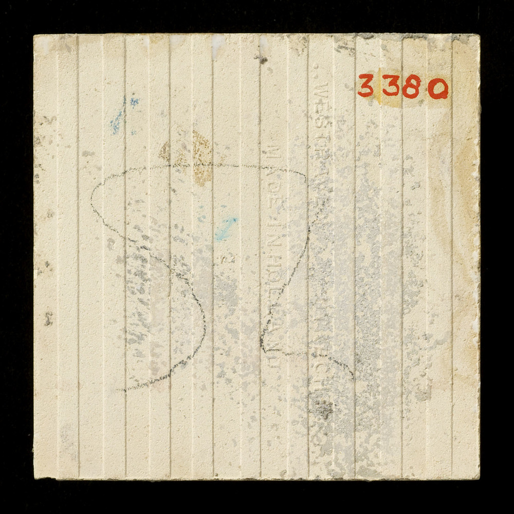Tegel in tinglazuur, voorstellende drietulp, vervaar...