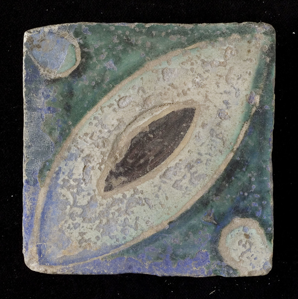 gekraste tegel van aardewerk met tinglazuur, vervaar...