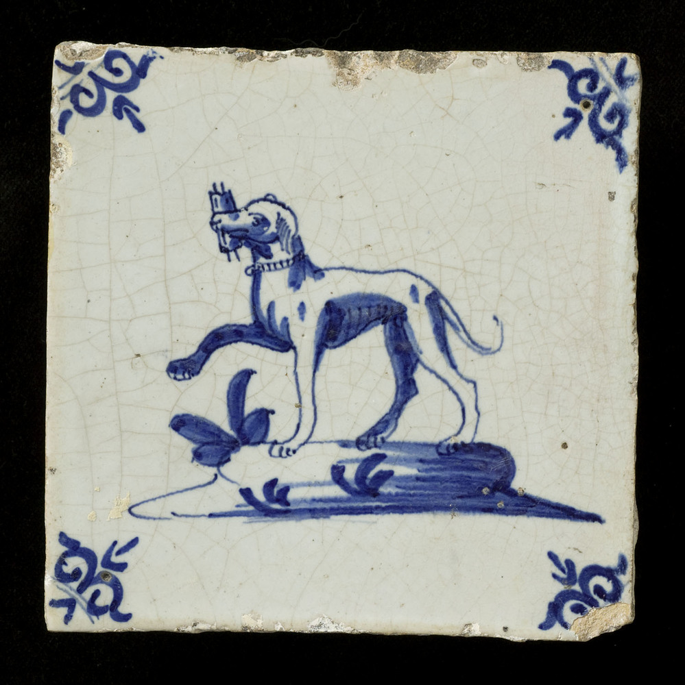 tegel van keramiek met tinglazuur, voorstellende: in...