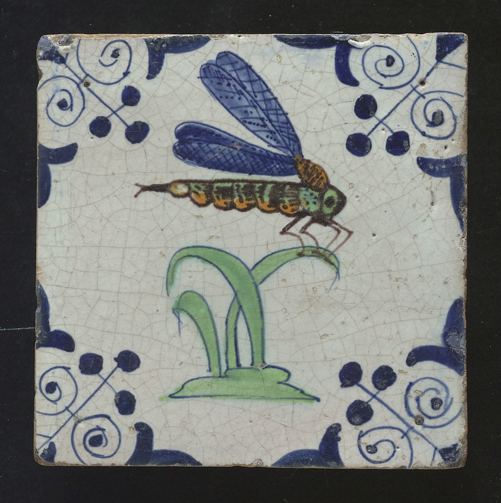 Tegel van keramiek, tinglazuur, voorstellende orname...