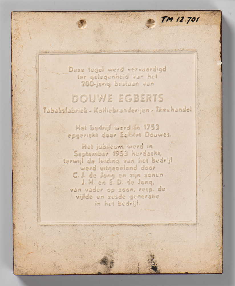 Tegel van keramiek met tinglazuur, voorstellende: De...