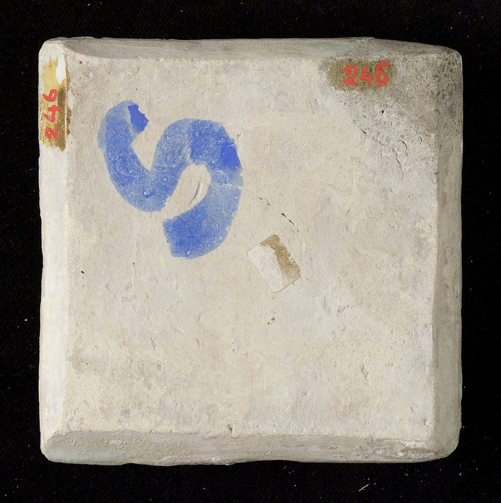 Vloertegel van keramiek, tinglazuur, voorstellende e...